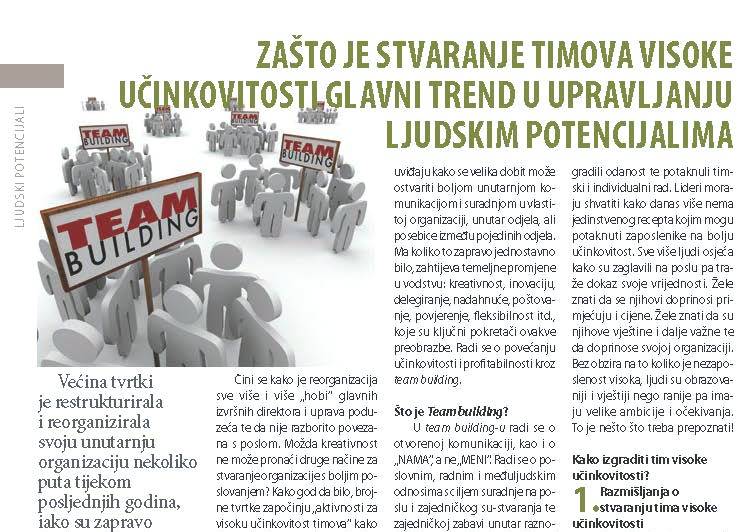 Radi se o povećanju učinkovitosti i profitabilnosti kroz team building.