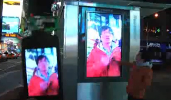 Naime, na svoj je iPhone isti postavio video odašiljač, a drugim, kojeg je držao u ruci je ometao video frekvenciju signala na velikim zaslonima na Times Squareu u New Yorku, piše dnevnik.hr. Na tim se zaslonima inače vrte nemalo plaćeni oglasi, a on je uspio pustiti vlastitu snimku.