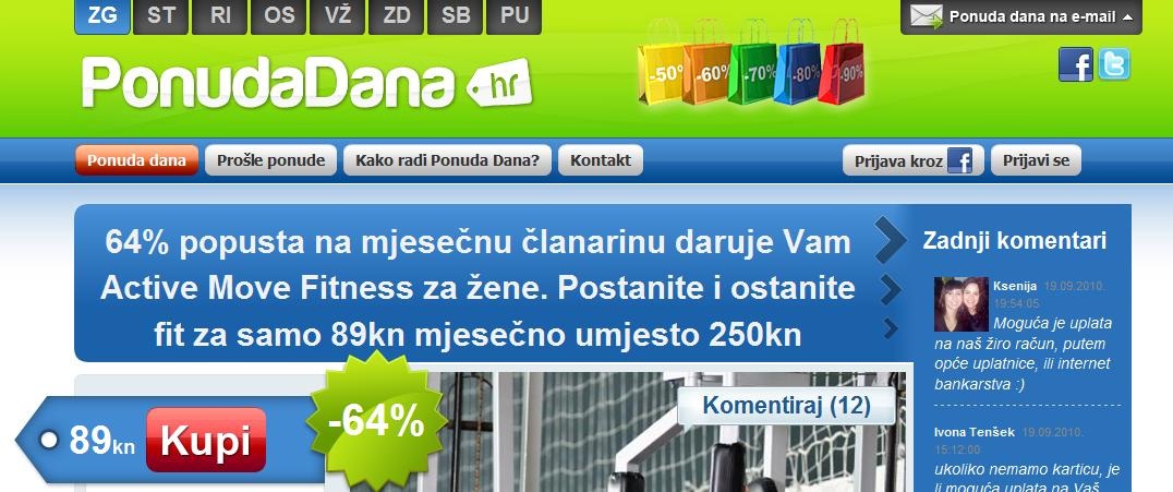Kolektiva i KupiMe, dvije vodeće stranice za grupnu kupnju dobile su konkurenciju u PonudiDana.hr te su na njoj već uspješno realizirane prve ponude za grupnu kupnju, odnosno radi se o kupnji s popustom dobara ili usluga ako ih kupi dovoljno velik broj ljudi, piše portal rep.hr.