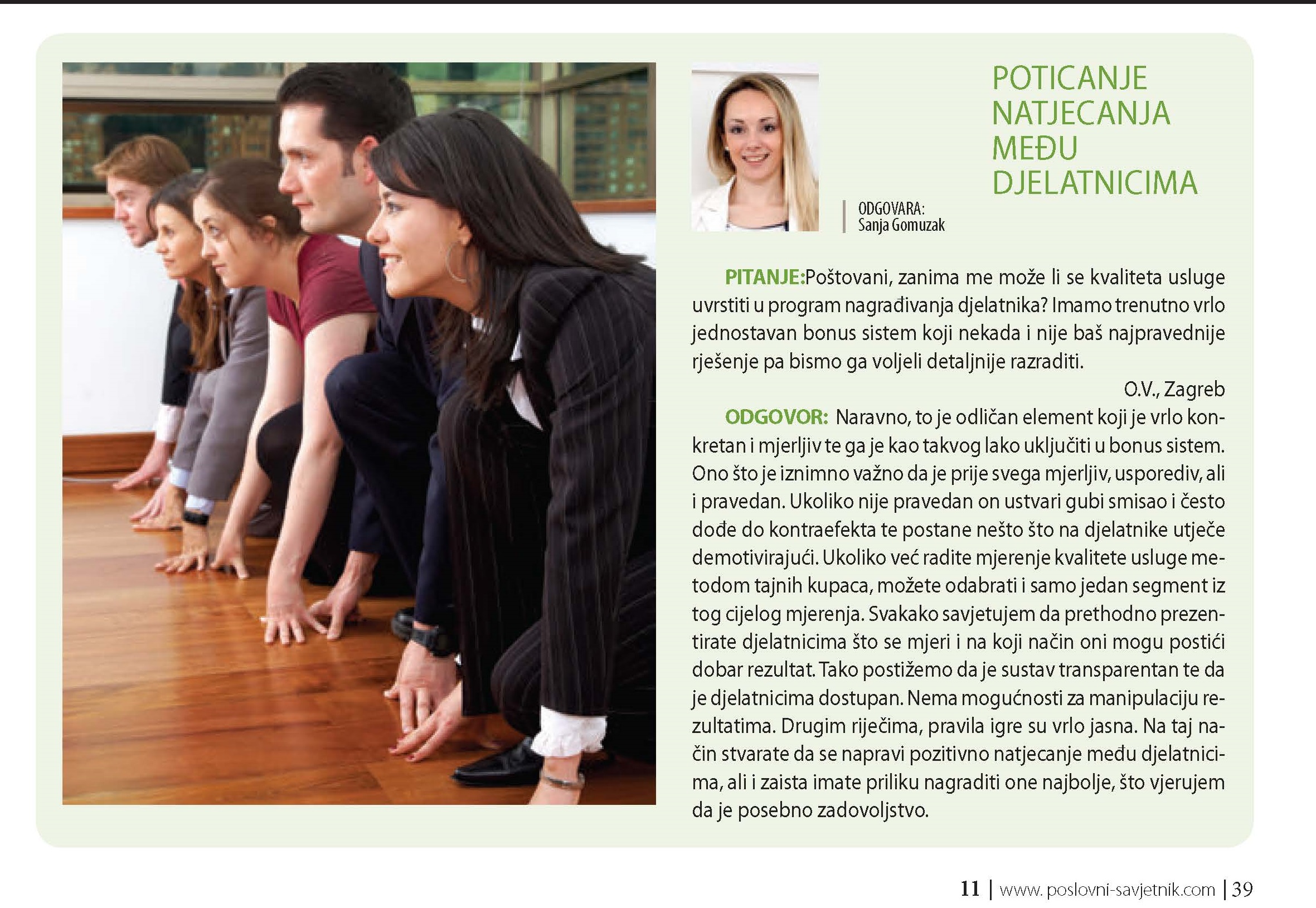Poštovani, zanima me može li se kvaliteta usluge uvrstiti u program nagrađivanja djelatnika? Imamo trenutno vrlo jednostavan bonus sistem koji nekada i nije baš najpravednije rješenje pa bismo ga voljeli detaljnije razraditi. O.V., Zagreb