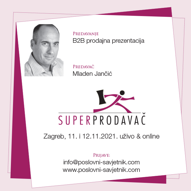 Program je na linku: Uživo! Prodajna konferencija Superprodavač 2021. i dodjela nagrada B2B Superprodavač godine | Poslovni savjetnik (poslovni-savjetnik.com)
