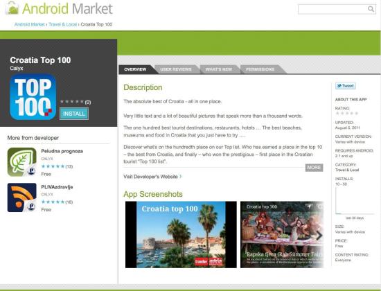 Hrvatska aplikacija za Android mobilne telefone, čiji je zlatni medijski pokrovitelj portal Poslovni savjetnik, pod nazivom "Croatia Top 100" zadnjih je nekoliko dana prava miljenica medija diljem svijeta.