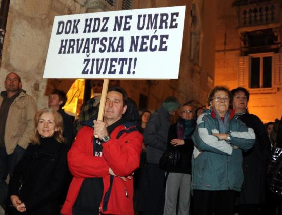Više stotina prosvjednika okupljenih oko Facebookove grupe „Split protiv Vlade“, skupilo se večeras na Rivi, a zatim su mirnom šetnjom otišli najprije do Peristila i Pjace, a zatim ispred sjedišta županijskog splitsko-dalmatinskog HDZ-a u Sinjskoj ulici, gdje su poderali jednometarski portre