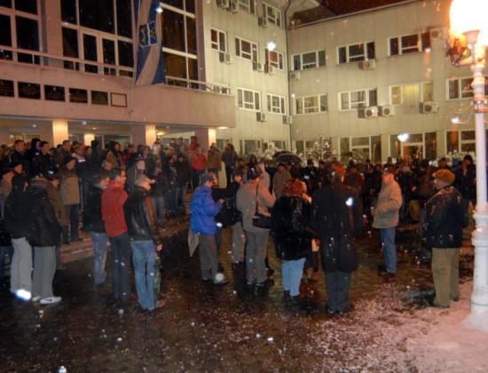 Na antivladinom prosvjedu u organizaciji facebookovaca na središnjem osječkom Trgu Ante Starčevića okupilo se večeras 600-tinjak uglavnom mlađih osoba, koji su tražili prijevremene izbore, odlazak Vlade premijerke Jadranke Kosor, a tijekom prosvjeda bilo je i manjih incidenat