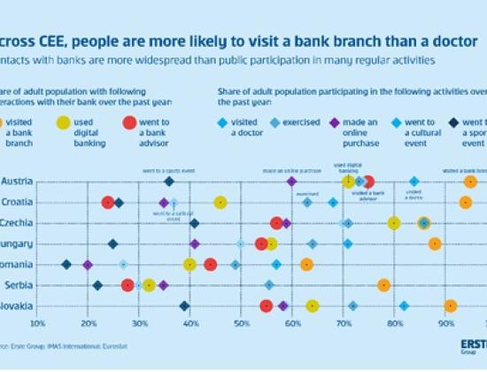 Iako se digitalne bankarske usluge koriste sve više, poslovnice i dalje ne gube na važnosti pa ih hrvatski građani dominantno posjećuju. Tako je gotovo 85% hrvatskih građana posjetilo poslovnicu u posljednjih mjesec dana, odnosno 96% u posljednjih šest mjeseci.
