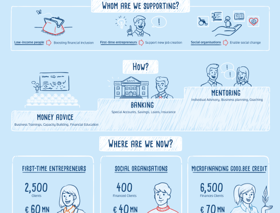 Procjena prvog učinka djelatnosti Programa društvenog bankarstva Erste Groupa na svim njezinim tržištima u srednjoj i istočnoj Europi, koja je danas obavljena, pokazuje da je svojom ponudom dopro do 2.500 poduzetnika početnika, 400 društvenih organizacija i 6.500 malih poljoprivrednika te da je p