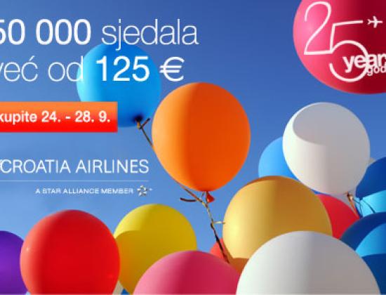 U povodu proslave svojeg 25. rođendana, Croatia Airlines vam daruje 50 000 sjedala na svojim međunarodnim linijama po cijeni već od 125 eura za povratnu aviokartu.