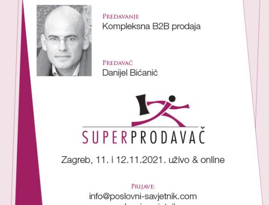 U zagrebačkom kongresnom centru Antunović 11. i 12.11.2021. održat će se jedanaesta konferencija Superprodavač, te će se dodijeliti godišnje nagrade „B2B Superprodavač“ godine. Organizator je portal Poslovni savjetnik.
