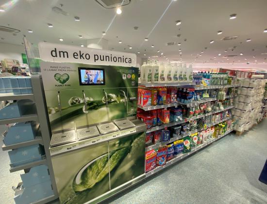 U prodavaonicama dm-a u Zagrebu, u City Centeru One West i u Dubravi na adresi Vile Velebita 6 u sklopu trgovačkog centra Kaufland, kupci od sada mogu kupovati još osviještenije, zahvaljujući dm eko punionicama.