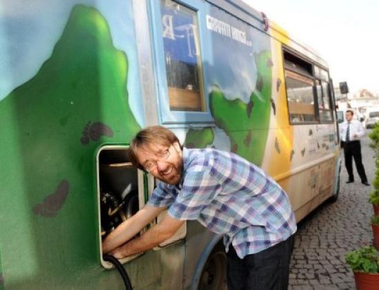 Britanac Andy Pag, ekološki osviješteni avanturist, uspješno je završio svoj put oko svijeta u starom autobusu kojeg pokreće upotrijebljeno ulje za prženje.