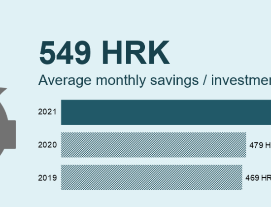Rezultati istraživanja o navikama štednje u Hrvatskoj, koje je u srpnju i kolovozu 2021. na uzorku od nešto više od 500 ispitanika provela agencija IMAS za potrebe Erste grupe, pokazali su da građani u prosjeku mjesečno izdvajaju 549 kune što predstavlja 70 kuna, odnosno 15% više nego lani.
