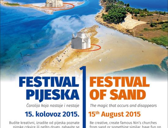 U organizaciji Turističke zajednice Grada Nina 15. kolovoza 2015. održat će se 1. Festival pijeska – Čarolija koja nastaje i nestaje. Održat će se na prirodnim pješčanim plažama u Ninu, Kraljičinoj plaži i plaži Ždrijac.