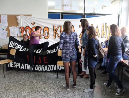Studenti Filozofskog fakulteta u Zagrebu blokirali su referadu zahtijevajući od Ministarstva obrazovanja, znanosti i športa (MZOŠ) da se svim redovitim studentima toga fakulteta omogući besplatan upis na drugu godinu studiranja.