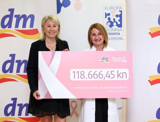 dm je Hrvatskom forumu protiv raka dojke Europa Donna uručio donaciju u vrijednosti od 246.500 kuna za kupnju uređaja za intraoperativno zračenje.