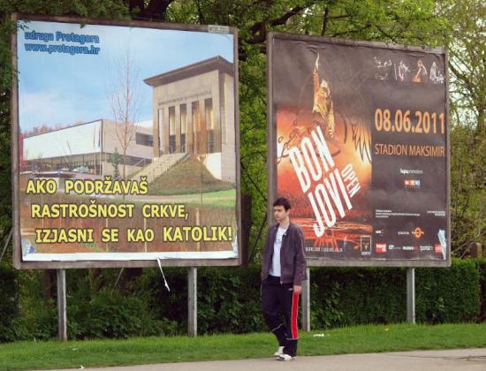 Na križanju Horvaćanske i Savske ulice osvanuo je provokativni plakat ''Ako podržavaš rastrošnost Crkve, izjasni se kao katolik'' na kojem u pozadini stoje ''biskupski dvori'' odnosno novosagrađena zgrada Hrvatske biskupske konferencije na Ksaver