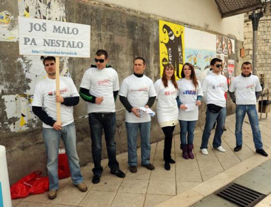 U Marmontovoj je ulici u središtu Splita pod nazivom "Još malo, pa nestalo - STOP rasprodaji RH" održan performans splitske podružnice Hrvatske stranke prava dr.