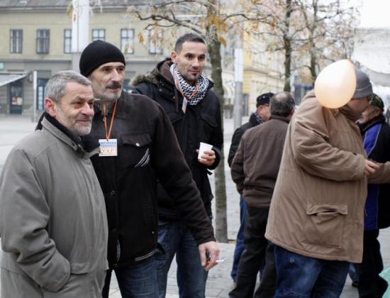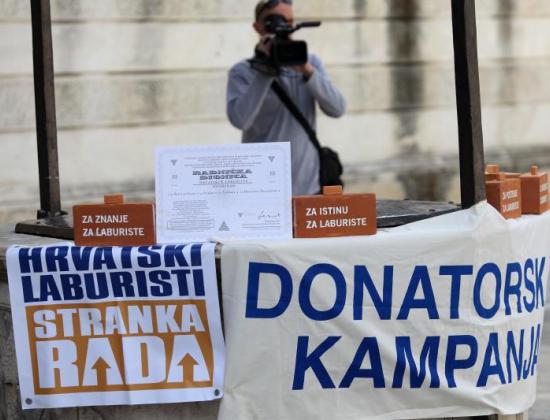 Predsjednik Hrvatskih laburista Dragutin Lesar predstavio je na središnjem zagrebačkom trgu stranački promidžbeni materijal - suvenire u obliku "Ciglica" i "Radničkih dionica" te poručio kako su laburisti stranka "bez torbara, bez crnih fondo