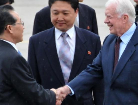 Bivši američki predsjednik Jimmy Carter i još tri bivša visoka dužnosnika zapadnih zemalja u utorak su stigli u Pyongyang, nadajući se da će uspjeti smanjiti napetosti na podijeljenom Korejskom poluotoku te potaknuti obje strane na pregovore o nuklearnim pitanjima, koji su od