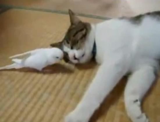 Ptičici je očito bilo silno dosadno, a maca je očito bila silno umorna. Možda je zato i reagirala skroz suprotno od logike svojih prirodnih instinkta.
