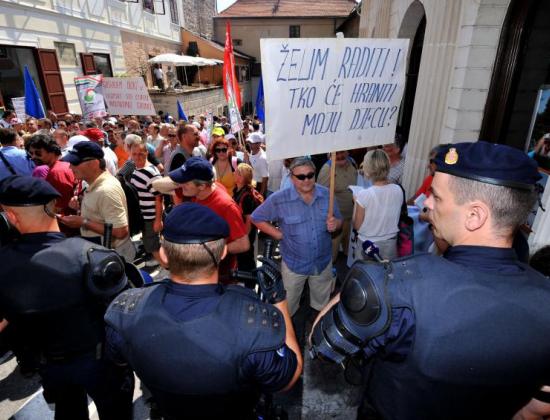 Radnici Dine Petrokemije i dalje blokiraju ulaz u tvrtku kod Omišlja na otoku Krku tražeći isplatu zaostalih plaća i rješavanje stanja tvrtke.