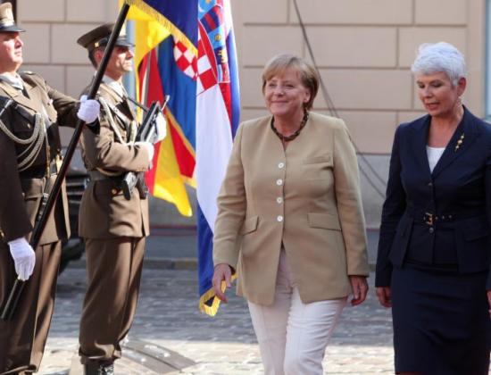 Njemačka kancelarka Angela Merkel stigla je u ponedjeljak poslije podne u Zagreb, na poziv hrvatske premijerke Jadranke Kosor, u službeni posjet Hrvatskoj tijekom kojega će se sastati i s hrvatskim predsjednikom Ivom Josipovićem.