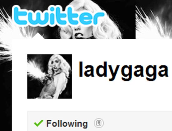 Lady Gaga postala je prva slavna osoba koja ima više od 10 milijuna pratitelja na društvenoj mreži Twitteru, a popularna američka pjevačica je, čuvši tu vijest, odmah požurila zahvaliti svojim obožavateljima, javio je BBC.