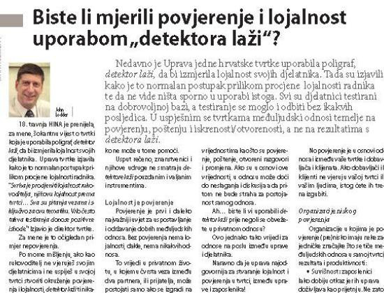 Po mome mišljenju, ako kao rukovoditelj ne vjeruješ svojim djelatnicima i ne uspiješ u svojoj tvrtci stvoriti okruženje povjerenja i lojalnosti, detektor laži ti nikako ne može u tome pomoći.