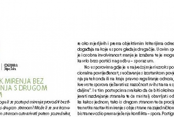 Zakon o mirenju podrazumijeva mirenje kao svaki postupak, bez obzira na to provodi li se u sudu, instituciji za mirenje ili izvan njih, u kojem stranke nastoje sporazumno riješiti spor uz pomoć jednog ili više izmiritelja koji strankama pomažu postići nagodbu, bez ovlasti da im nametnu obvezujuće