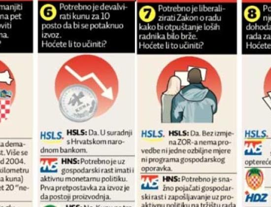 Već smo danas pisali o nekim konkretnim prijedlozima hrvatskih političara (da preciziramo - Kukuriku koalicije) kako Hrvatsku izvući iz krize. Jutarnji list također se pozabavio tom temom i hrvatskim strankama postavio pitanje što će učiniti osvoje li vlast. Evo reakcija…