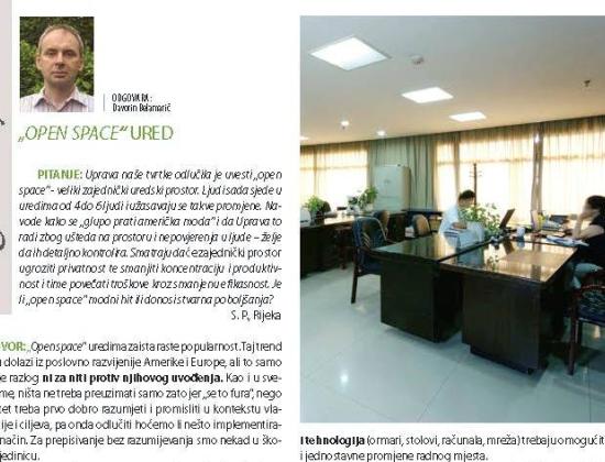 Uprava naše tvrtke odlučila je uvesti „open space“ - veliki zajednički uredski prostor. Ljudi sada sjede u uredima od 4 do 6 ljudi i užasavaju se takve promjene.