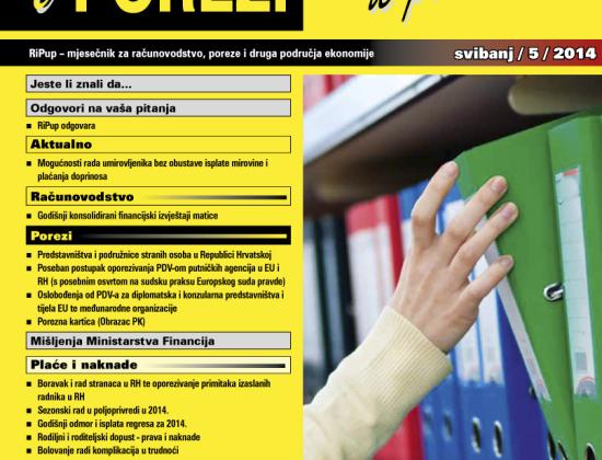 Novi broj časopisa Računovodstvo i porezi u praksi - svibanj je u tisku, a kod pretplatnika će biti u utorak,13. svibnja. I u broju svibanj donosimo niz aktualnosti iz područja prava, poreza, propisa i računovodstva.