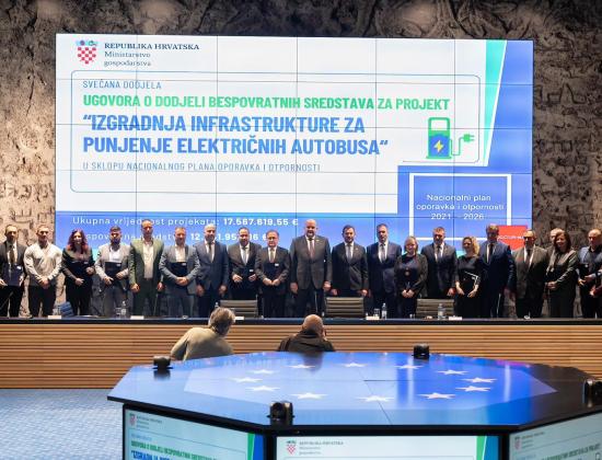 U Nacionalnoj i sveučilišnoj knjižnici u Zagrebu danas su dodijeljeni ugovori o dodjeli bespovratnih sredstava za projekte izgradnje infrastrukture za punjenje električnih autobusa, u okviru Nacionalnog plana oporavka i otpornosti.
