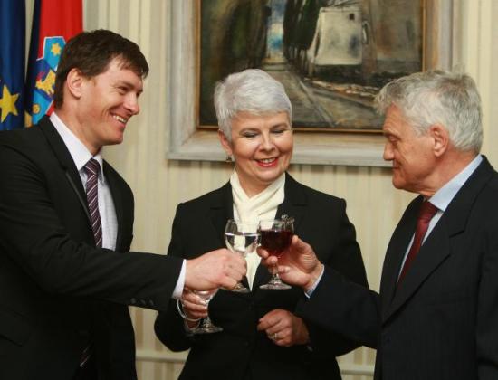 Predsjednica vlade Jadranka Kosor primila je u Banskim dvorima najboljeg svjetskog skijaša i hrvatskog skijaškog reprezentativca Ivicu Kostelića i članove njegova tima te im čestitala u osobno i ime vlade na osvajanju Svjet