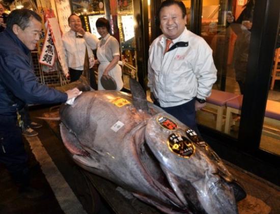 Jedna je tuna prodana za rekordnih 565.000 eura na prvoj dražbi u godini u ribarnici Tsukiji u Tokiju, najvećoj na svijetu. Primjerak od 269 kg, ulovljen u vodama prefekture Aomori na sjeveru, kupio je vlasnik poznatog lanca sushi restorana u Tokiju Sushizanmai.