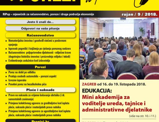 Novi rujanski broj časopisa Računovodstvo i porezi u praksi je u tisku, a na stolovima pretplatnika bit će u četvrtak.