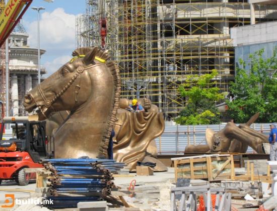Postavljanje divovske brončane skulpture Aleksandra Velikog počelo je u utorak u Skopju, što bi moglo još više otežati odnose s Grčkom, već narušene zbog 20 godina starog bilateralnog prijepora o imenu Makedonije.