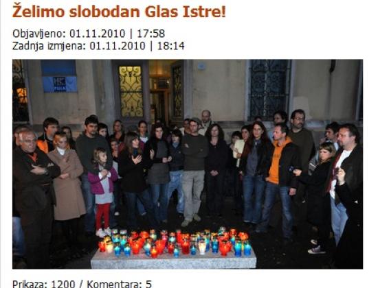U povodu 41. obljetnice izlaženja Glasa Istre kao dnevnih novina radnici tog dnevnika zapalili su svijeće na pulskoj Rivi ispred zgrade Glasa Istre.