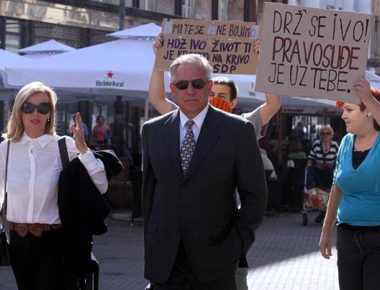 Na zagrebačkom Županijskom sudu aktivisti Građanske akcije bivšem premijeru Ivi Sanaderu pripremili su "odbor za doček". Tako je nekada najmoćniji čovjek u zemlji centrom grada šetao uz uvredljive transparente.