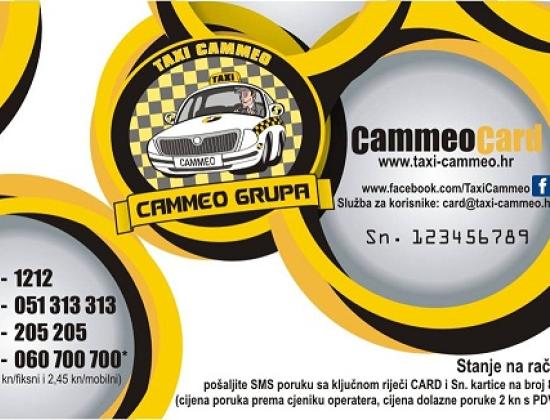 Taxi Cammeo od 1. listopada u prodaju pušta Cammeo Card, prepaid karticu koju će korisnici moći nadoplatiti bonovima u iznosu od 50, 100 i 200 kuna, a koja će se moći kupiti na svim kioscima Tiska u Zagrebu, Rijeci, Osijeku i Puli.