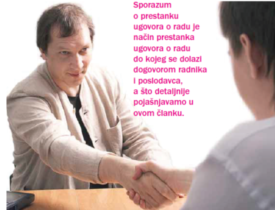 Sporazum radnika i poslodavca jedan je od načina prestanka ugovora o radu sukladno čl. 103. (110.) tč. 5. Zakona o radu.