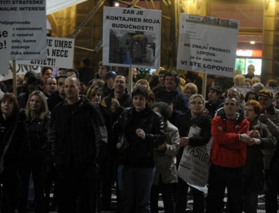 Na antivladinom prosvjedu u organizaciji facebookovaca na središnjem osječkom Trgu Ante Starčevića okupilo se večeras 600-tinjak uglavnom mlađih osoba, koji su tražili prijevremene izbore, odlazak Vlade premijerke Jadranke Kosor, a tijekom prosvjeda bilo je i manjih incidenat
