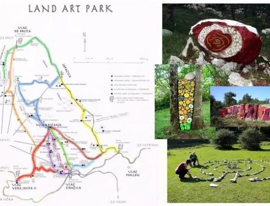 Susret s umjetničkim radovima na neočekivanim mjestima u planinskoj šumi koji potiču svijest o okolišu.