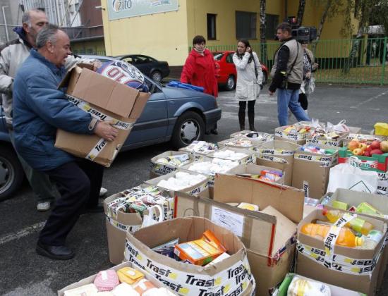 Bivšim radnicima propale Mlinsko-pekarske industrije Đakovštine stigao je kamion s nešto više od tone hrane i drugih potrepština koje je dovezlo izaslanstvo zagrebačkoga Hokejaškog kluba Medveščaka.