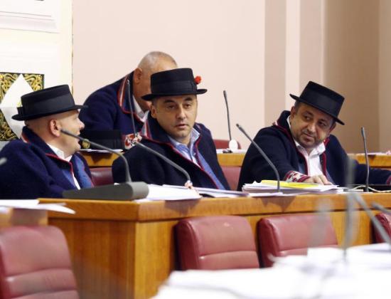 HDSSB-ovi zastupnici u u Hrvatskom saboru prozvali HDZ-ove kolege da zloupotrebljavaju parlamentarnu raspravu, na što su HDZ-ovci uzvratili da HDSSB-ovci sa šeširima na glavi, kao dio slavonske nošnje u kojima sjede u sabornici, pokazuju kako ne poštuju parlament