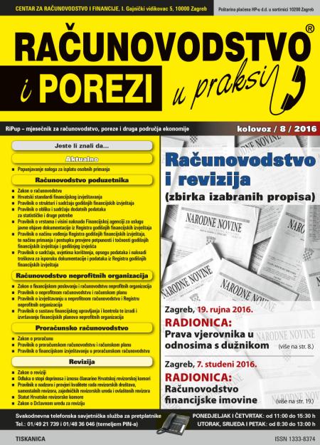 Računovodstvo i porezi u praksi kolovoz 2016.